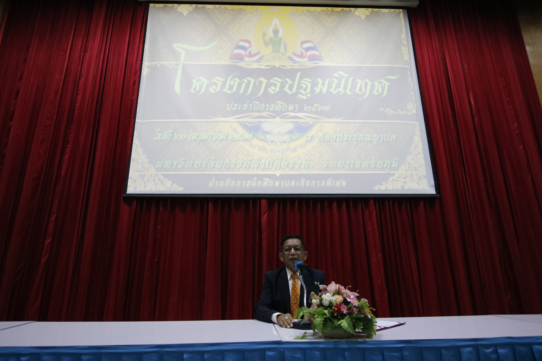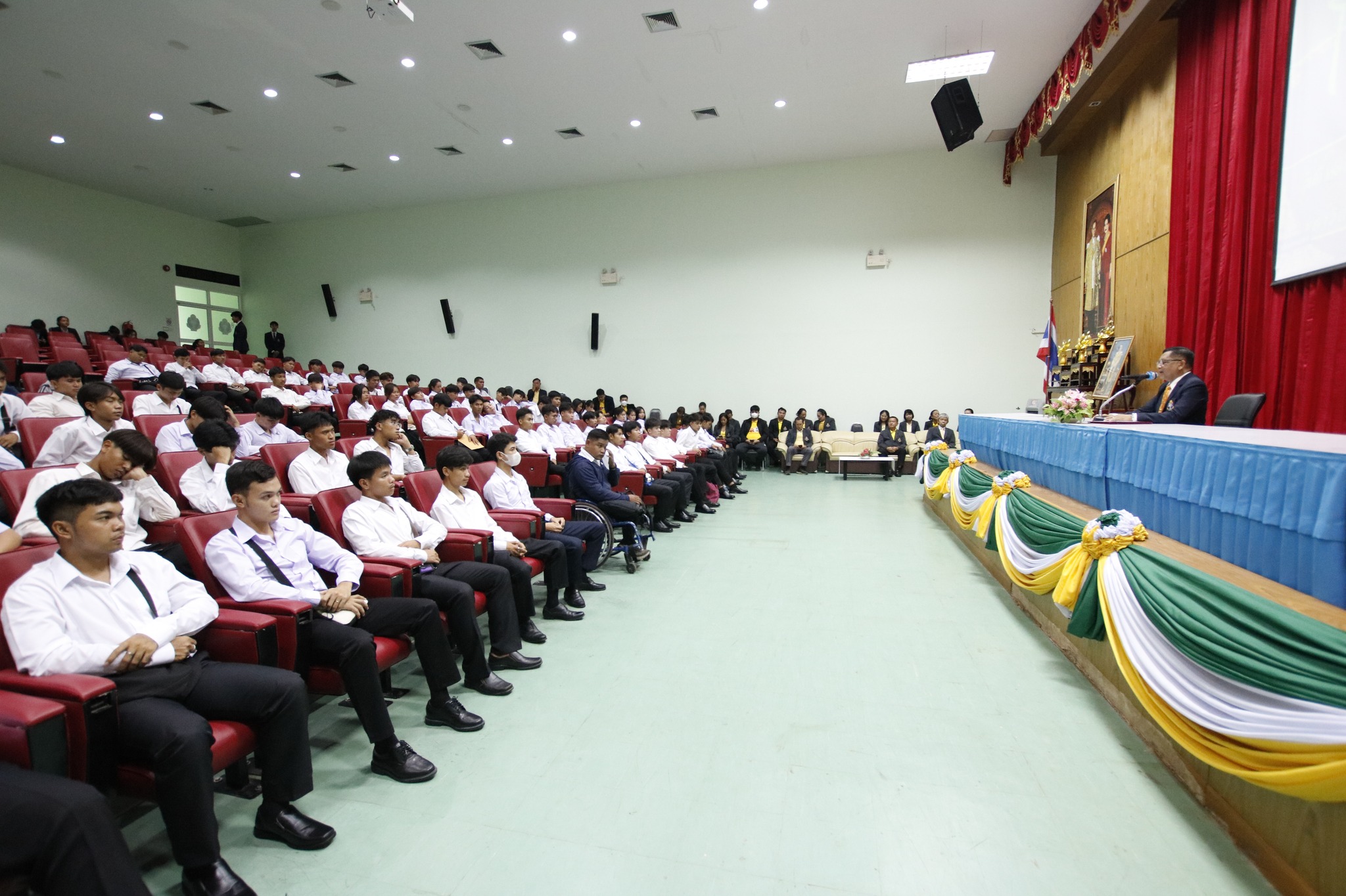 วันจันทร์ที่ 20 พฤษภาคม 2567 เวลา 09.00 น. ดร.พิทักษ์ วงแหวน รองอธิการบดีมหาวิทยาลัยการกีฬาแห่งชาติ ประจำวิทยาเขตชัยภูมิ เป็นประธานกล่าวต้อนรับและให้โอวาทนักศึกษา ในพิธีเปิดโครงการปฐมนิเทศนักศึกษาใหม่ ประจำปีการศึกษา 2567 พร้อมด้วยคณะผู้บริหาร คณาจารย์ บุคลากร และนักศึกษา เข้าร่วมโครงการ โดยมี 1. ผู้ช่วยศาสตราจารย์พัณฑ์ชิตตา ศิรินัญทพันธ์ ผู้ช่วยอธิการบดีฯฝ่ายวิชาการ อธิบายการจัดการศึกษาในมหาวิทยาลัยฯ 2. ผู้ช่วยศาสตราจารย์ประกอบ ศักดิ์ภูเขียว ผู้ช่วยอธิการบดีฯฝ่ายกิจการนักศึกษาและกิจการพิเศษ อธิบายการเข้ากิจกรรมของนักศึกษา ทุนกู้ยืมเพื่อการศึกษา และศูนย์การฝึกนักศึกษาวิชาทหาร 3. นางสาวศิริวงค์ เหลือสุข ผู้ช่วยอธิการบดีฯฝ่ายวิจัย และประกันคุณภาพ อธิบายนักศึกษากับบทบาทในการประกันคุณภาพการศึกษา 4. นายภัทรภูมิ ขวัญบุญจันทร์ (อาจารย์) อธิบายสวัสดิการสำหรับนักศึกษา 5. นายแสนศักดา วรรณมูล (อาจารย์) อธิบายกีฬาเพื่อความเป็นเลิศ 6. ผู้ช่วยศาสตราจารย์ ดร.กรณ์ทิพย์ ลิ่มนรรัตน์ รองคณบดีคณะวิทยาศาสตร์การกีฬาและสุขภาพ กล่าวแนะนำแนวทางการศึกษาคณะวิทยาศาสตร์การกีฬาและสุขภาพ 7. ผู้ช่วยศาสตราจารย์จักรพันธ์ เรืองนุภาพขจร รองคณบดีคณะศิลปศาสตร์ กล่าวแนะนำแนวทางการศึกษาคณะศิลปศาสตร์ 8. นางสาวอัมพวัน นาคเขียว รองคณบดีคณะศึกษาศาสตร์ กล่าวแนะนำแนวทางการศึกษาคณะศึกษาศาสตร์ 9. องค์การนักศึกษา จัดกิจกรรมแนะนำรอบรั้วเขียวขาวเหลือง ณ ห้องประชุมพญาแล ชั้น 3 มหาวิทยาลัยการกีฬาแห่งชาติ วิทยาเขตชัยภูมิ