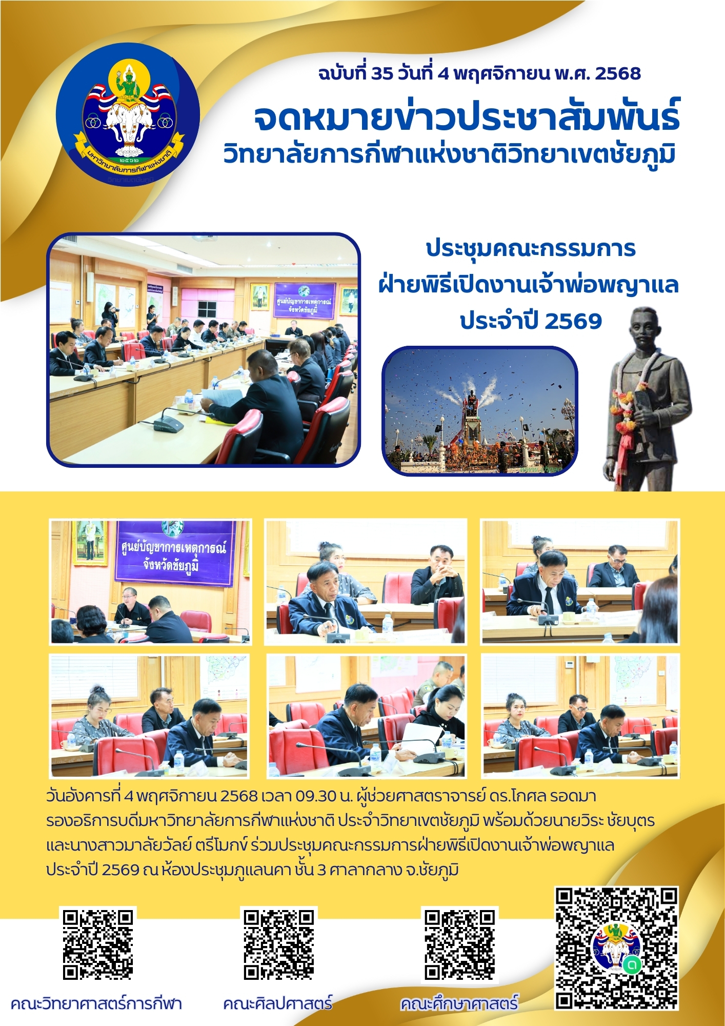 ร่วมประชุมคณะกรรมการฝ่ายพิธีเปิดงานเจ้าพ่อพญาแล ประจำปี 2569 ณ ห้องประชุมภูแลนคา ชั้น 3 ศาลากลาง จ.ชัยภูมิ